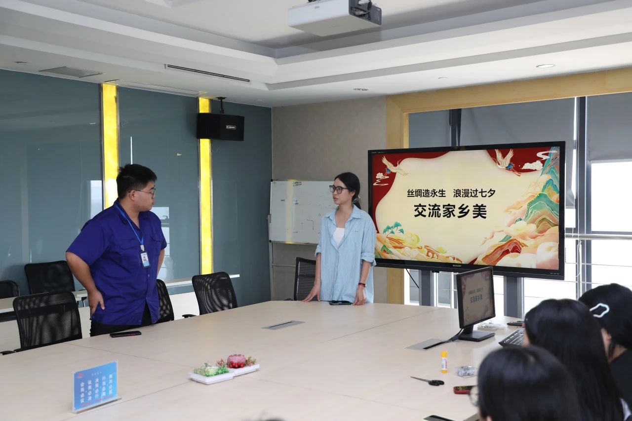 為促進機關、企事業單位和諧穩定發展,豐富青年的文化生活和交友需求,滿足員工深入了解震澤鎮千年絲綢文化震澤鎮聯合鎮婦聯、鎮絲綢企業及通鼎工會共同開展青年職工七夕聯誼活動。8月9日下午,在通鼎辦公樓活動室舉行了七夕節特別活動。