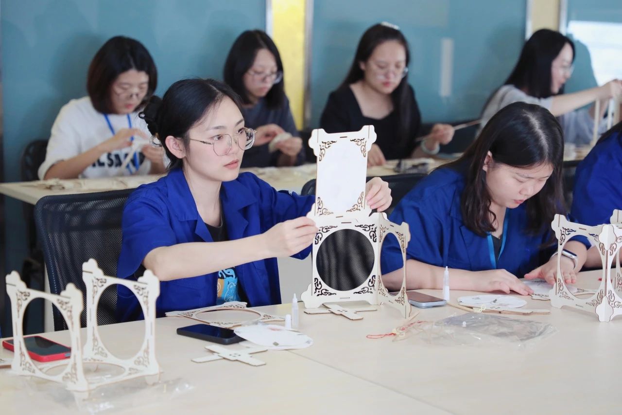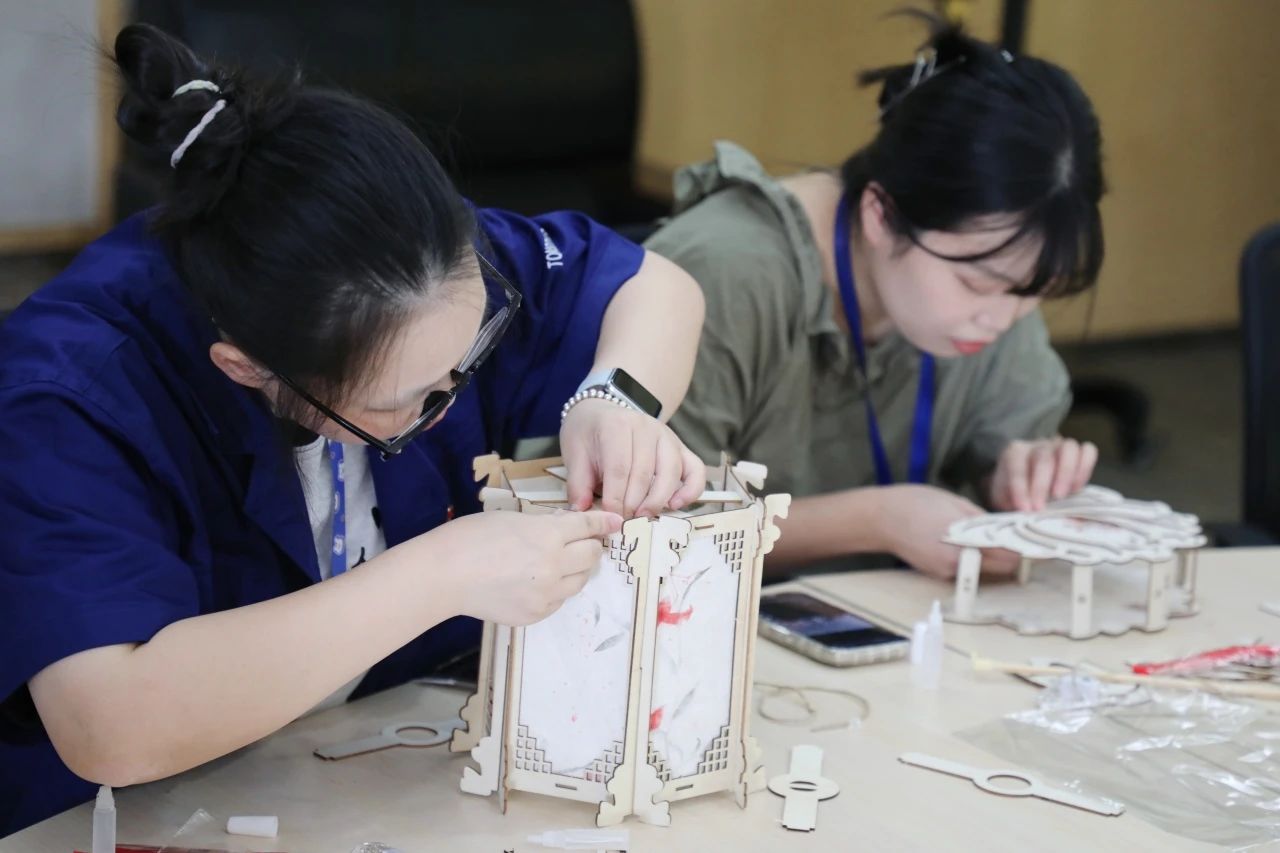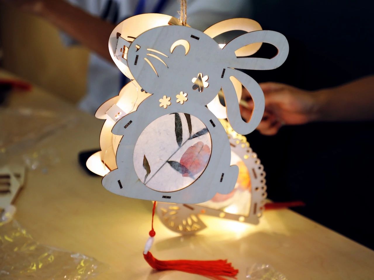 員工們按照教程依次取下木質骨架里的雕花側板,將一面面生動可愛的宣紙圖粘貼在燈籠上,最后連接上手提桿和流蘇帶,搭配上色彩繽紛的led燈條完成裝飾。在制作過程中,員工們互相幫助、交流經(jīng)驗,率先完成制作的員工熱心地與同事們分享自己制作的心得和竅門,活動結束后,大家自豪地展示著自己親手制作的花燈并合影留念。制作花燈活動豐富了中秋節(jié)的慶祝方式,增添了節(jié)日的氛圍,增強了團隊的凝聚力和友誼,讓員工們在制作花燈的過程中充分感受中華傳統(tǒng)文化的魅力。