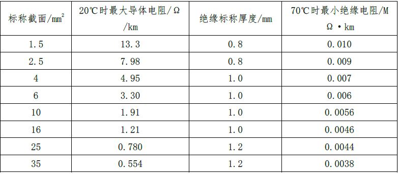 三、技術參數(shù) 1. 導體電阻、絕緣標稱厚度、最小絕緣電阻