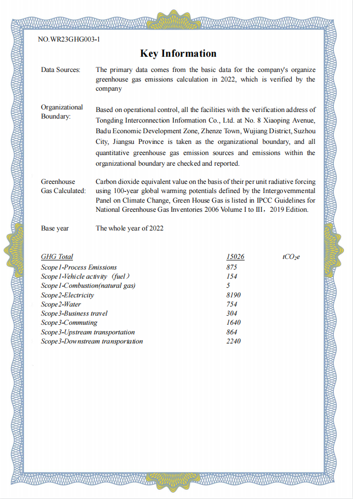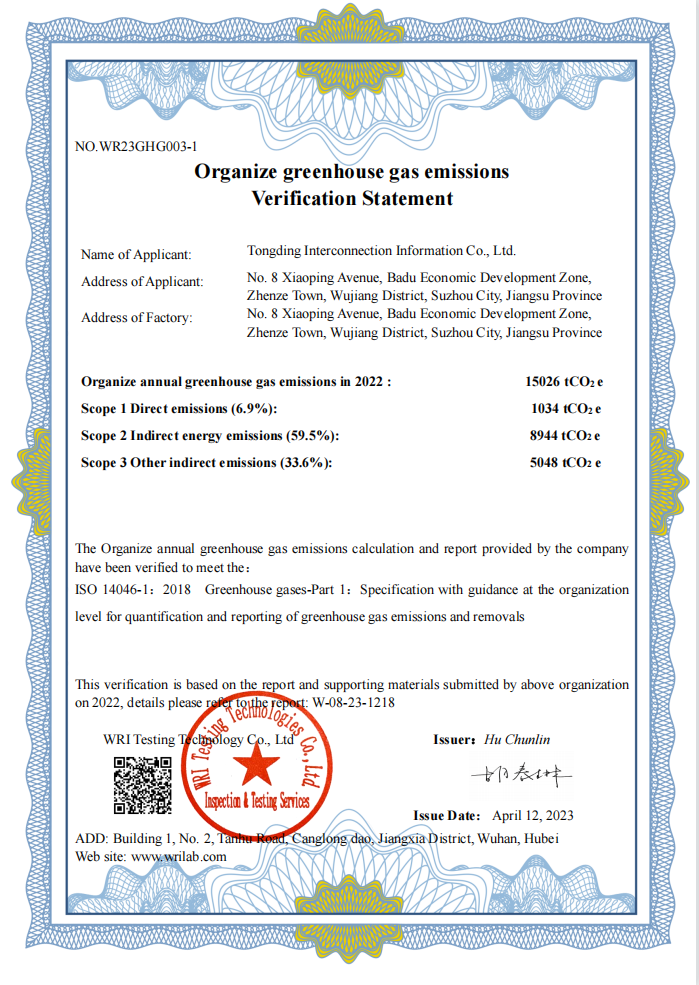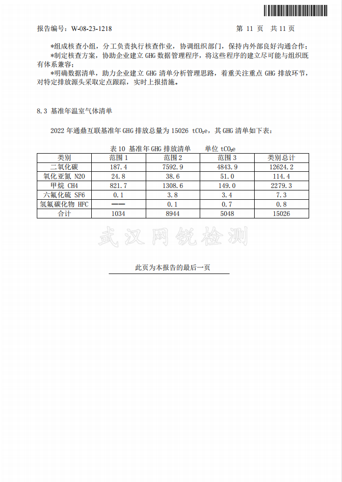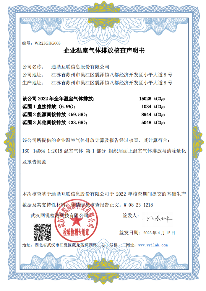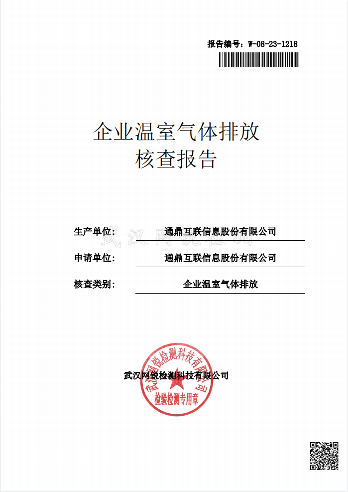 通鼎互聯(lián)企業(yè)溫室氣體排放核查報(bào)告、聲明書